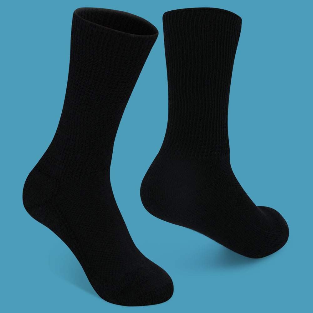 Our Copper Diabetic Socks enhance foot health, lowering infection risks and diabetes-related complications. Copper's antimicrobial prowess curbs bacterial growth and eliminates odor, ensuring feet stay fresh and healthy.