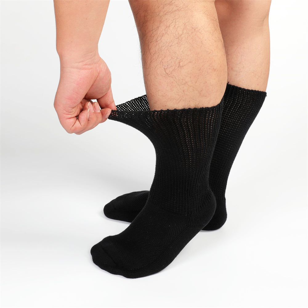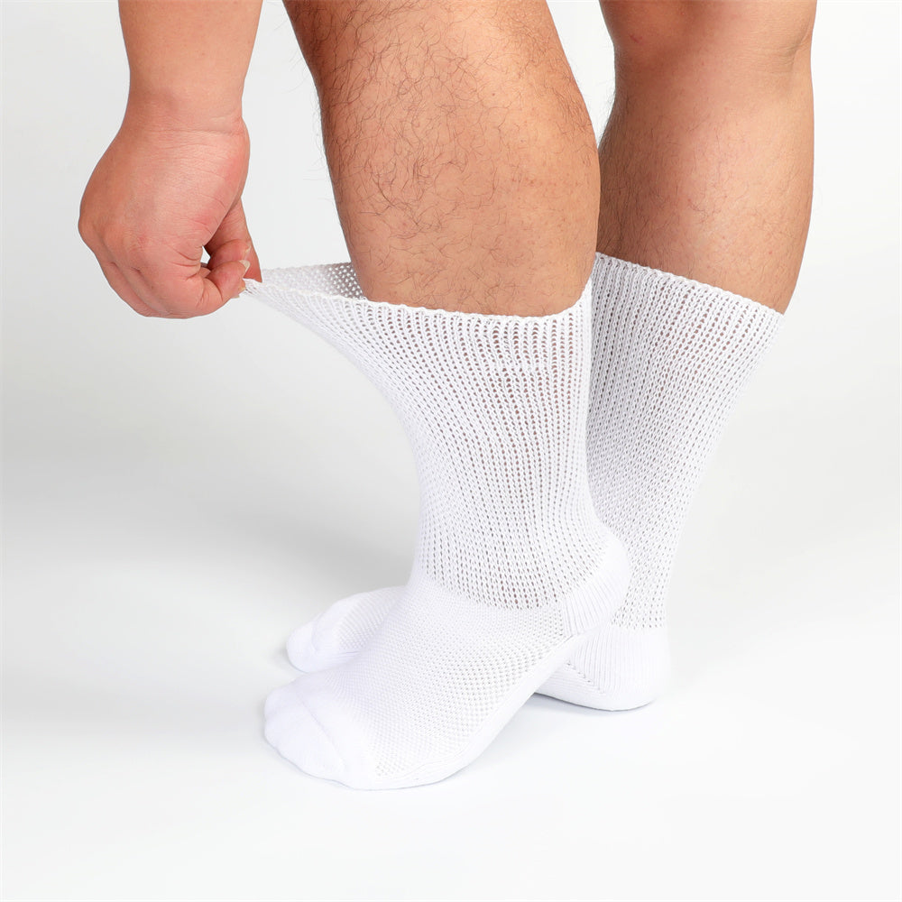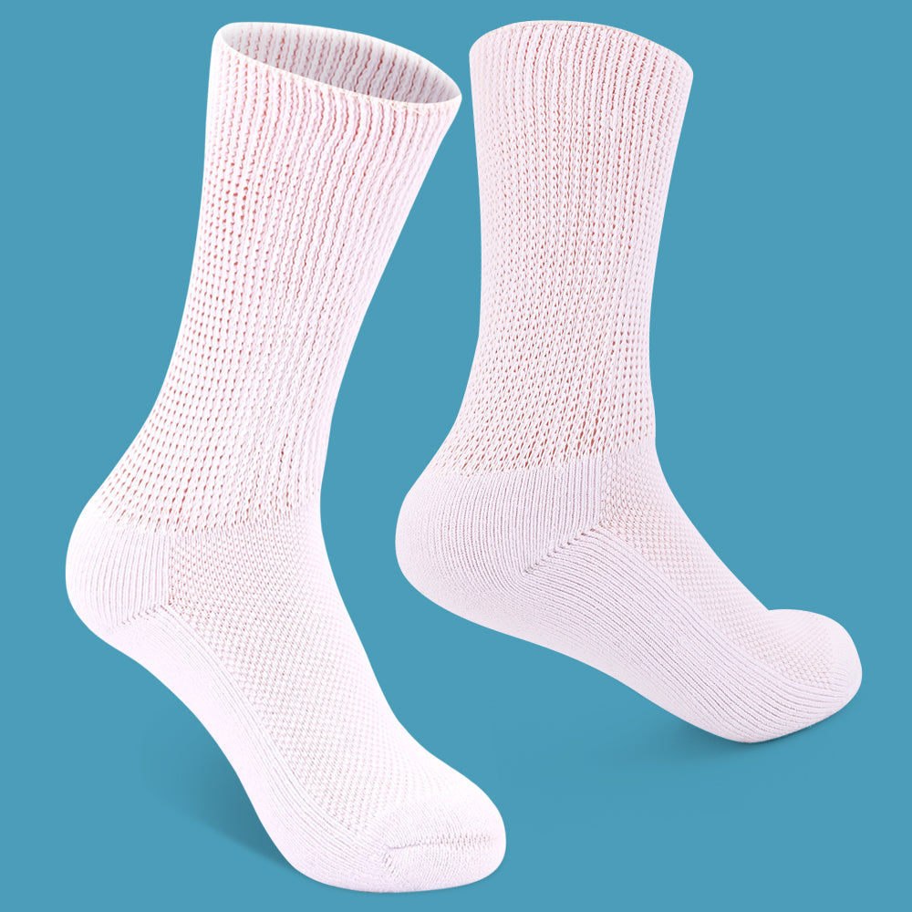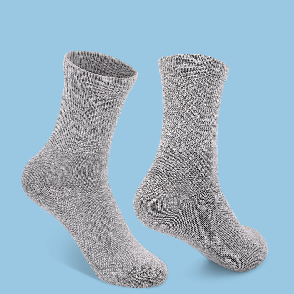 Copper antibacterial technology utilizes the inherent antimicrobial properties of copper to inhibit the growth of bacteria on surfaces. Copper ions disrupt bacterial cell membranes and interfere with cellular processes, reducing bacterial viability. This technology is used in diabetic socks to provide a natural, long-lasting solution for reducing microbial contamination of the feet.
